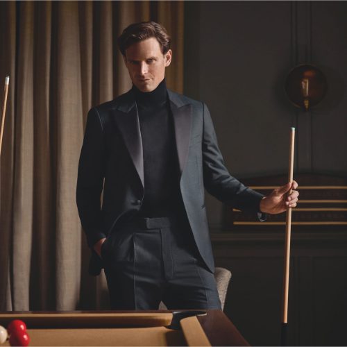 Each tuxedo and dinner jacket is cut to your measurements, styled to your preference, and crafted from luxurious fabrics such as silk-blend barathea or fine mohair.